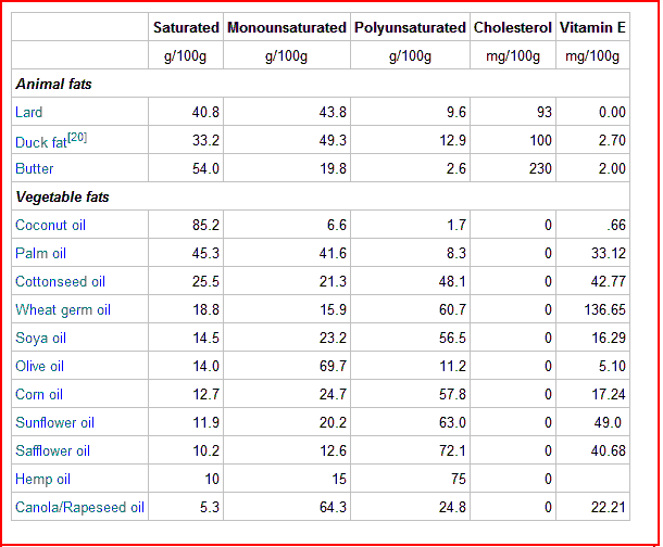 Comparison of the saturation ratio of various fats (Source Wikipedia)